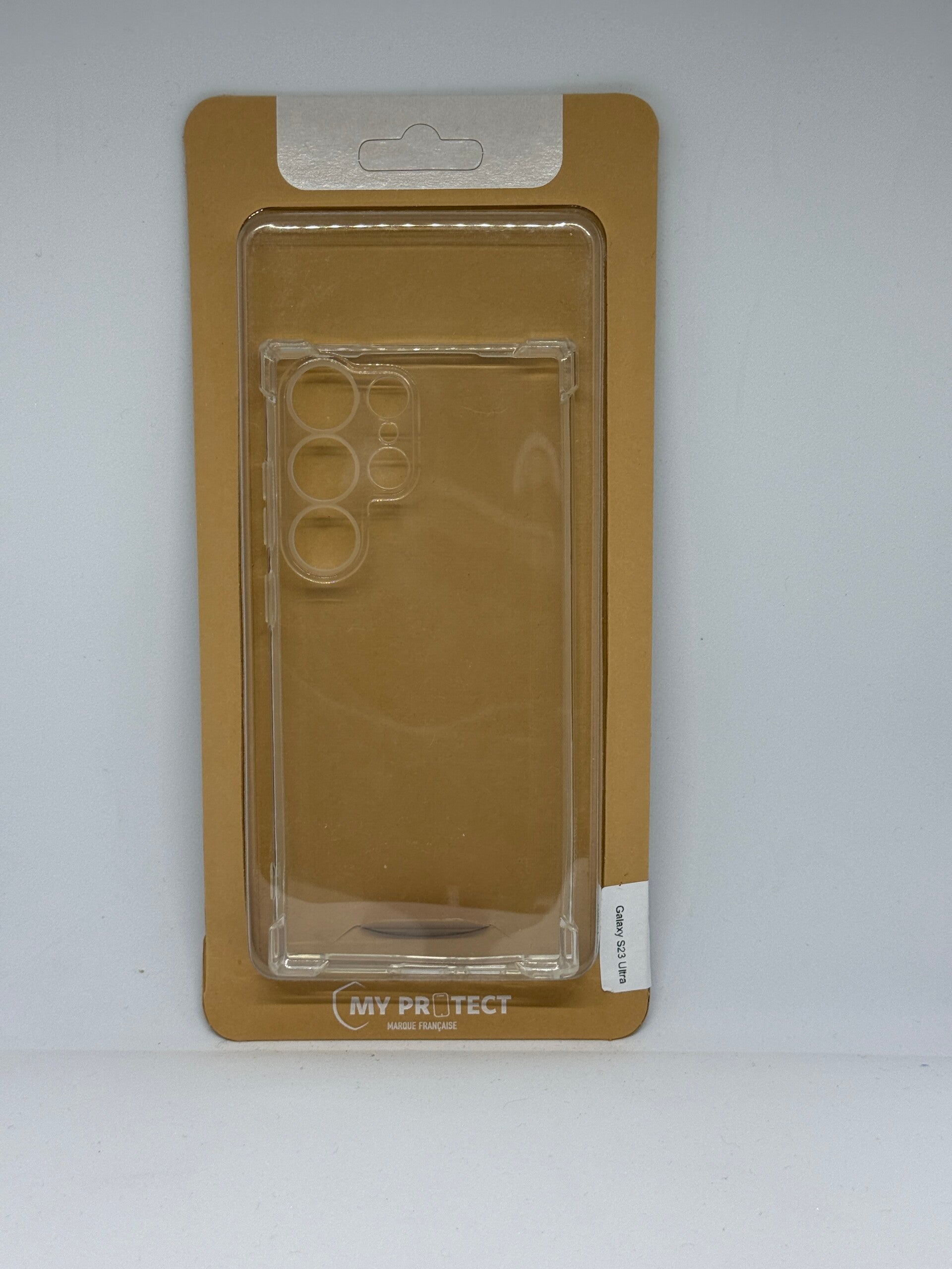 Protégez efficacement votre Samsung Galaxy S23 tout en conservant son design d’origine grâce à cette coque transparente My Protect (marque française), équipée de coins renforcés pour une protection optimale.